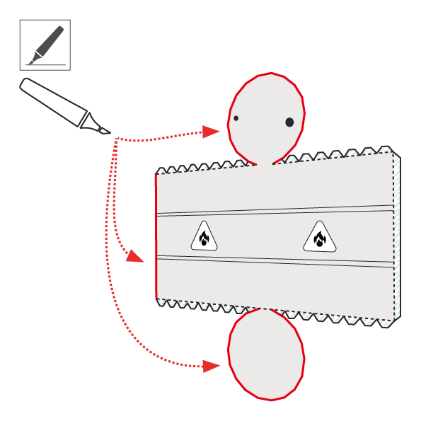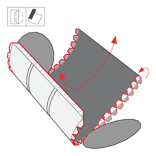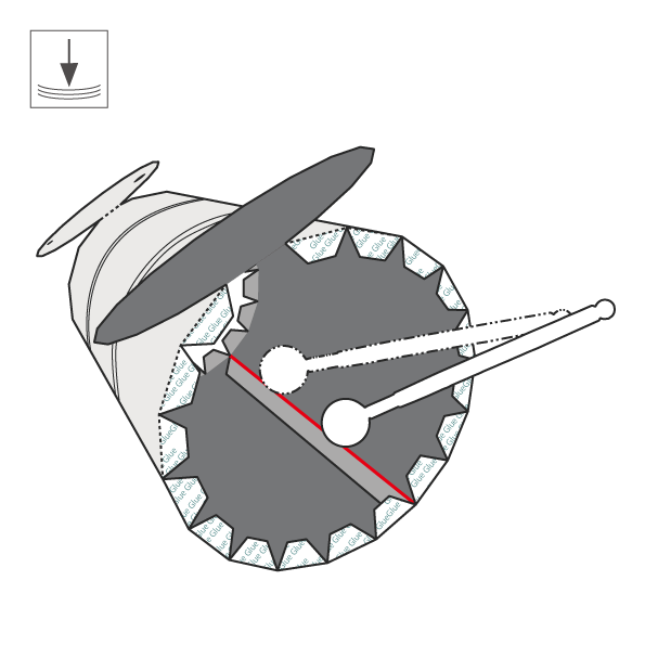 4)折り曲げ:下図を参照して接着箇所のタブを折り、円柱型の物体で面を曲げます。