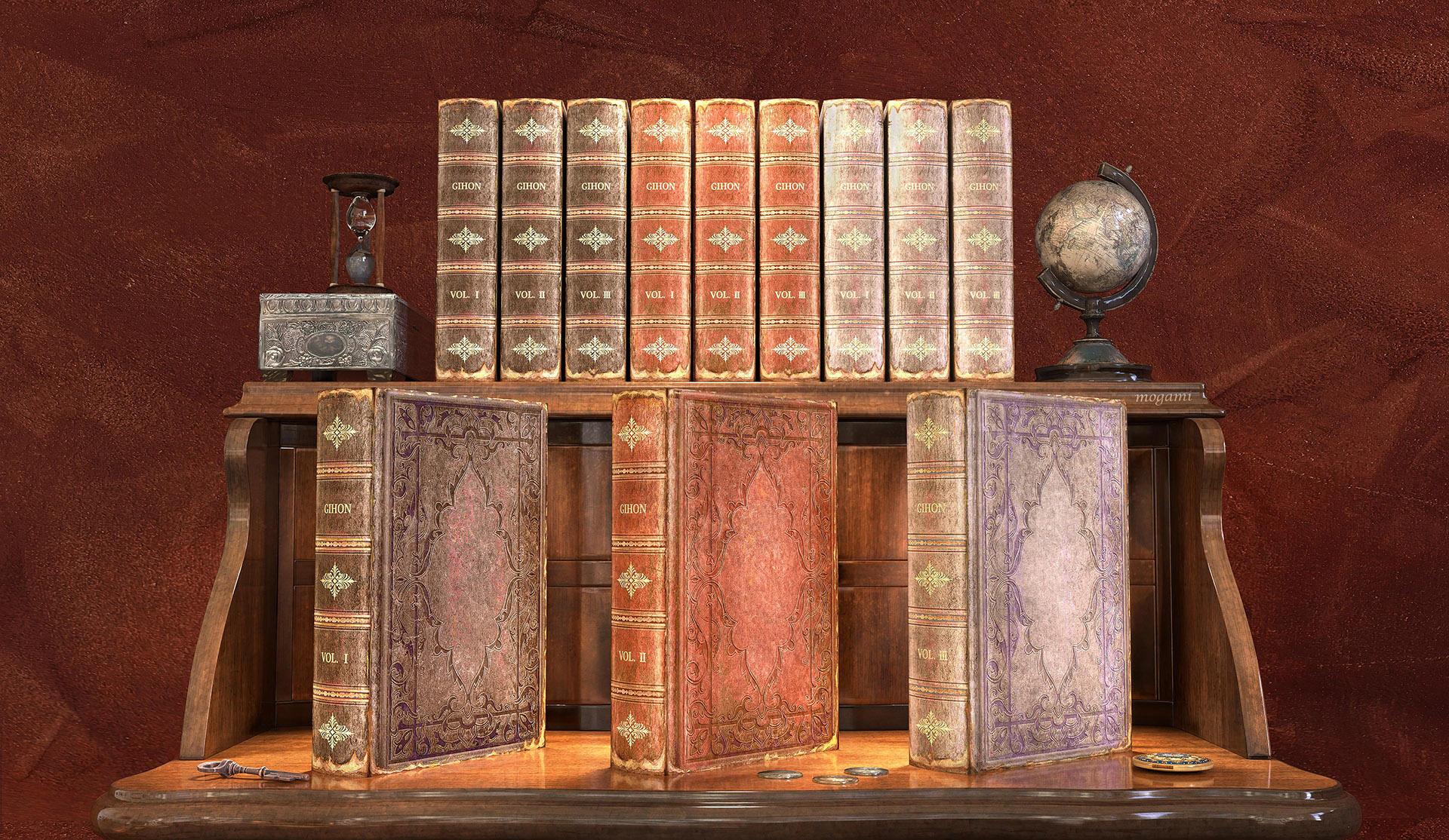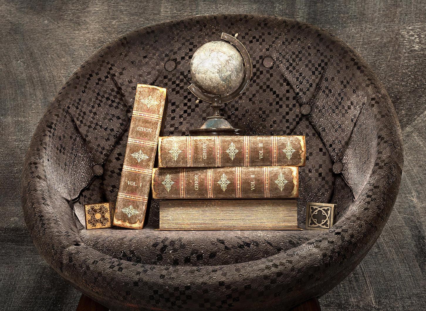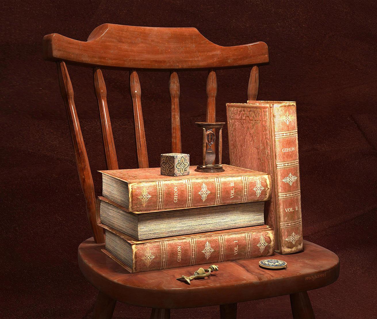 本作は、古書をテーマにしました。16 世紀の偉大な肖像画家の 1 人であるハンス・ホルバイン・ザ・ヤンガーが作ったアンティーク柄を引用し、意匠の一部として取り込みました。さらに、テーマを強調させるため意匠に埃や砂、剥がれ跡、すり傷、色褪せなど時間経過を感じさせるような要素を加えました。mogami shopの方で販売しています。