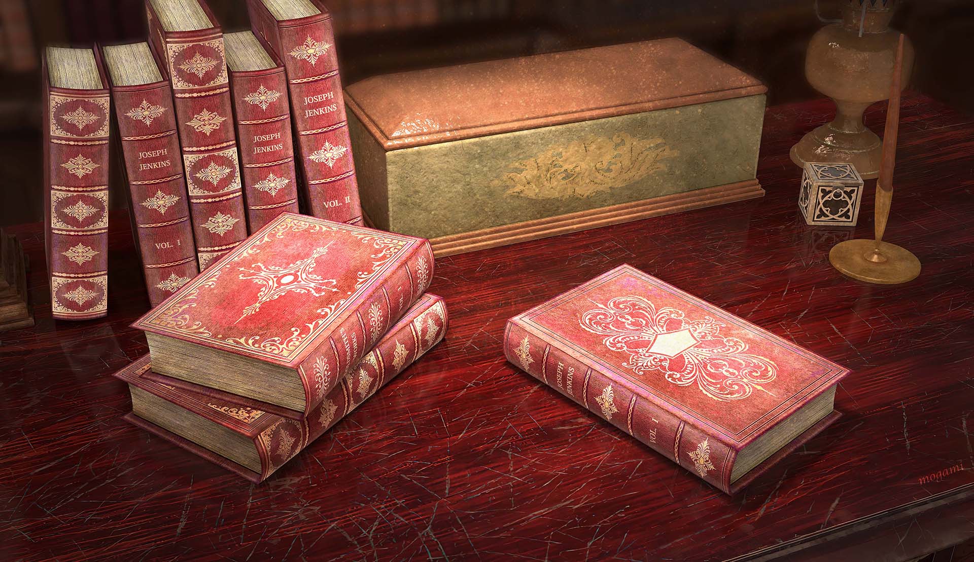革の模様、金箔、紙の束、埃や砂の跡など本物のアンティーク本を彷彿させるような意匠に仕上げました。mogami shopの方で販売しています。
